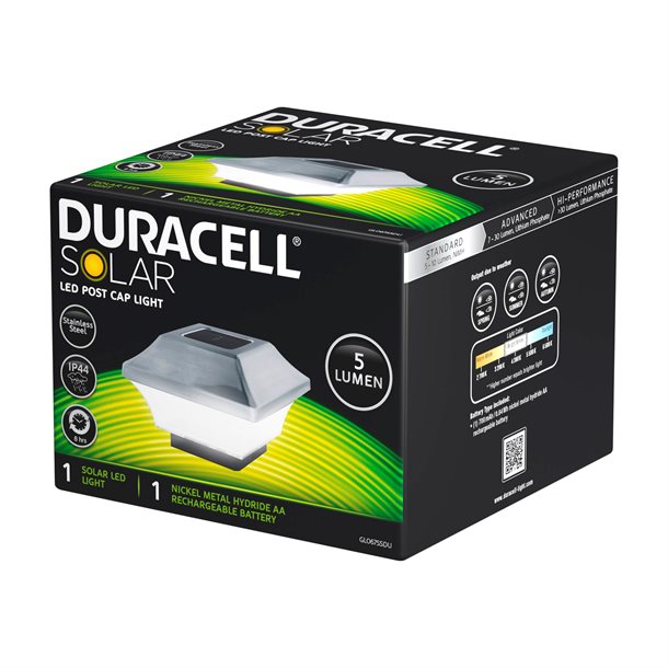 Duracell stolpehat med 5 lumen lys i rustfrit stål