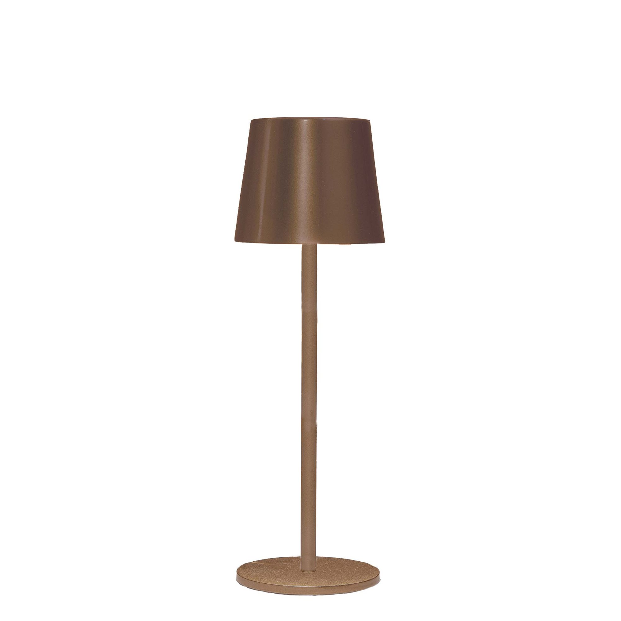 Genopladelig bordlampe med kelvin-skift, trinløst dæmpning, 27,5 cm høj, i bronze farve - IP44