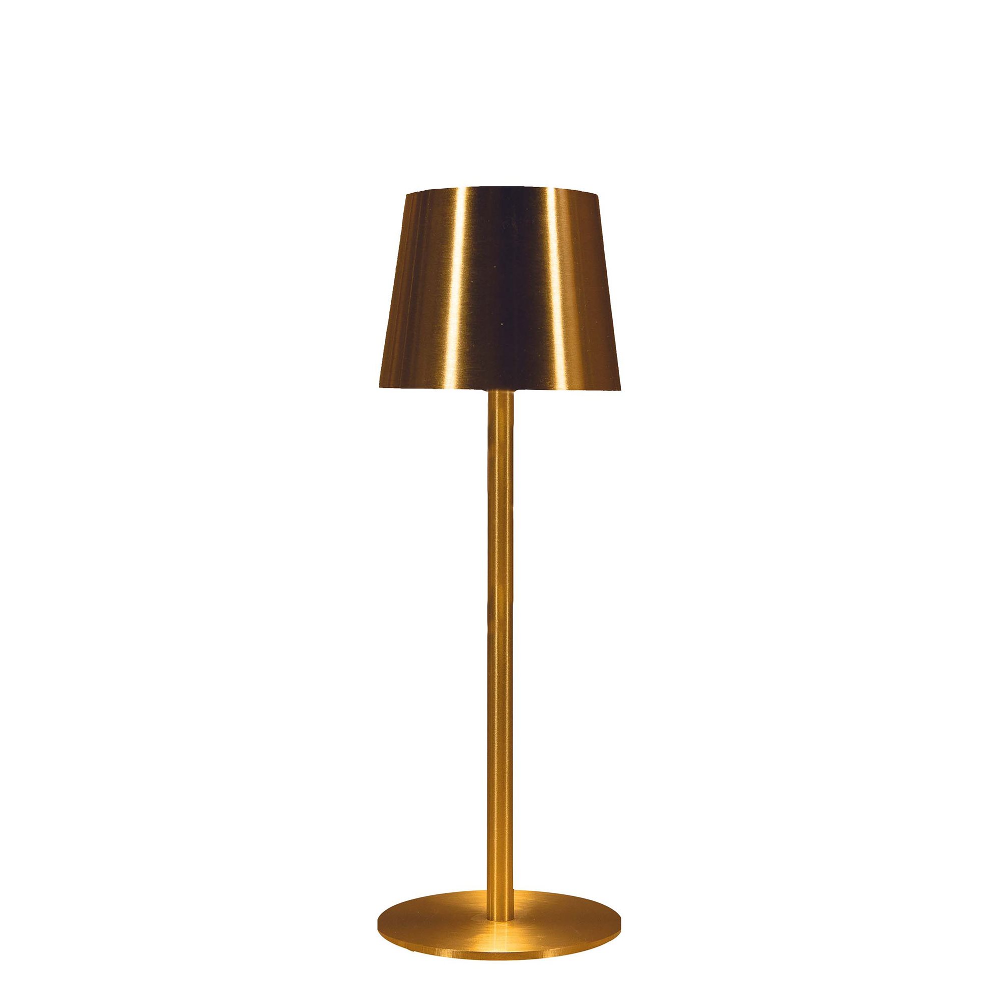 Genopladelig bordlampe med kelvin-skift, trinløst dæmpning, 27,5 cm høj, i Guld / Messing farve - IP44