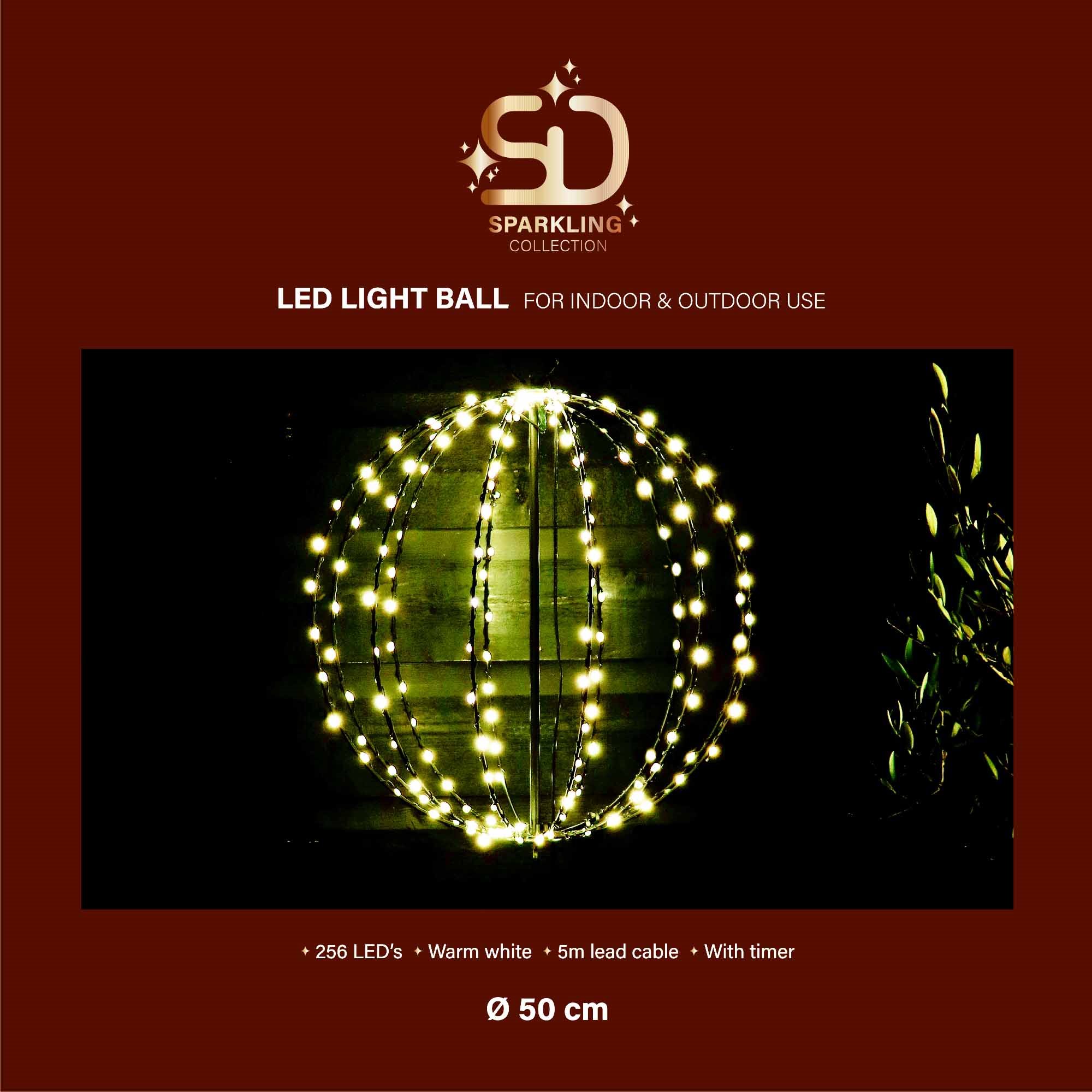 Julekugle med timer -50 cm. i diameter med 256 LED’er i varm hvid.