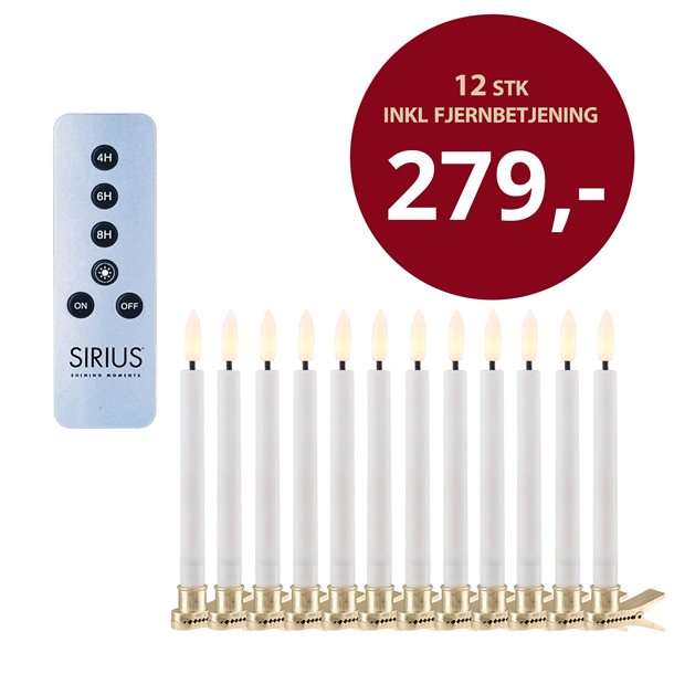 Sirius Sille Juletræslys 12 stk. inklusiv 1 stk. Sirius fjernbetjening H 11 x Ø 1,2 cm SIR36220 SB